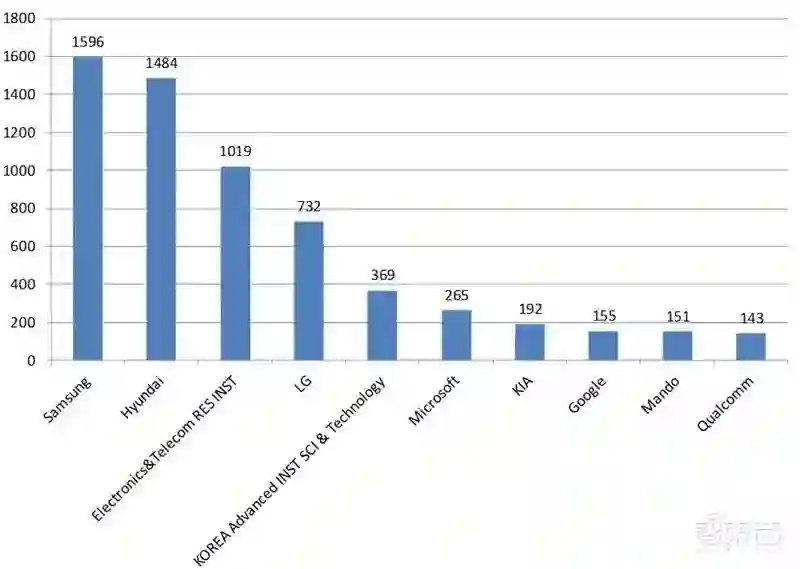下图为各个主要专利权人在韩国地区的申请量,可以看出,韩国比较知名的公司和研究机构如三星、现代、韩国电子通信研究院、LG等公司在韩国申请量排名靠前,且申请量比较大,而其他韩国本土公司的申请量则较低。而微软、Google等美国公司在韩国的申请量同样较小,但仍多过其他韩国本土公司。