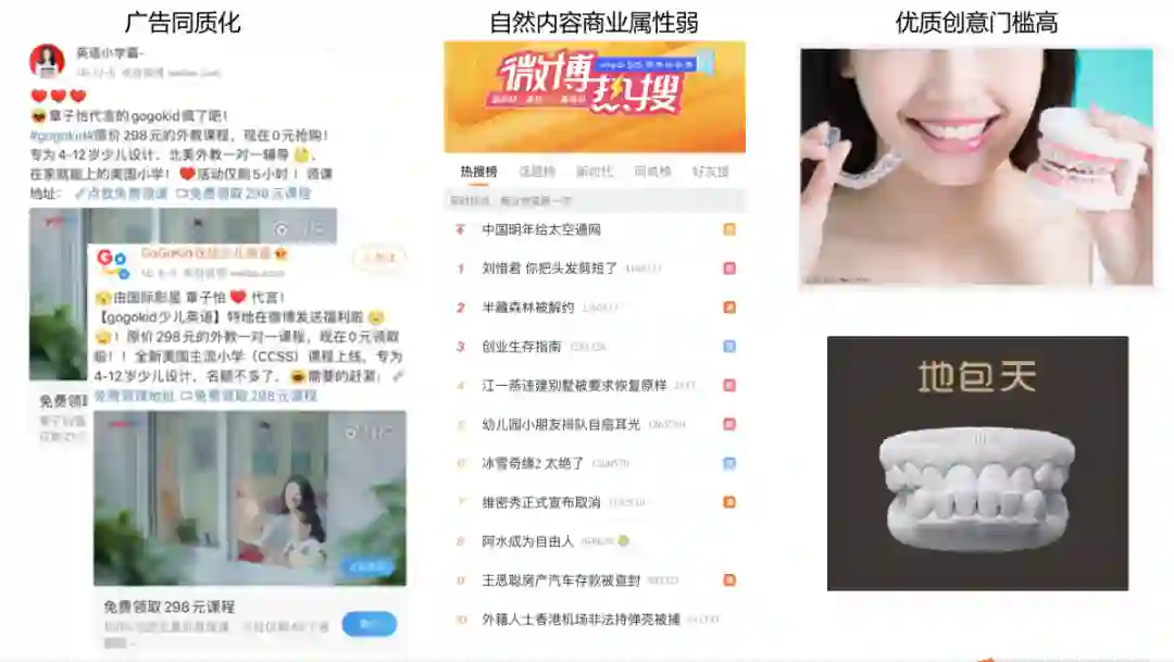 在微博中,非内容场景主要是关注流/热门流。它主要的特点是内容多样,上下关联性弱。在这样的场景下,用户对于流内内容没有太多的预判,广告也不一定需要和紧挨着的自然内容有联系,所以这种情况下广告投放更偏向于选人。