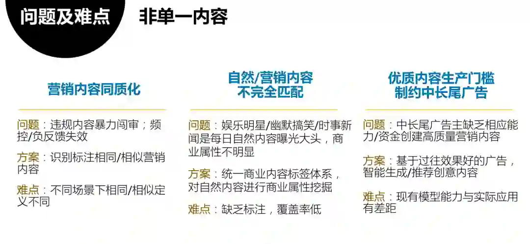 首先,针对单一内容/单一广告由于内容理解能力的不足会引发以下几个问题: