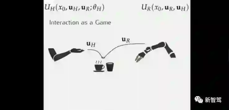 当人类也考虑机器人的行为来调整自己的行为时,其效用函数UH变为四个变量:初始状态x0、人类运动轨迹uH、机器人运动轨迹UR及觉察到有机器人后的隐形影响因子θH。有不少证据表明人们实际上并不一定去在博弈中实现均衡,因为人类是通过计算达到平衡的。