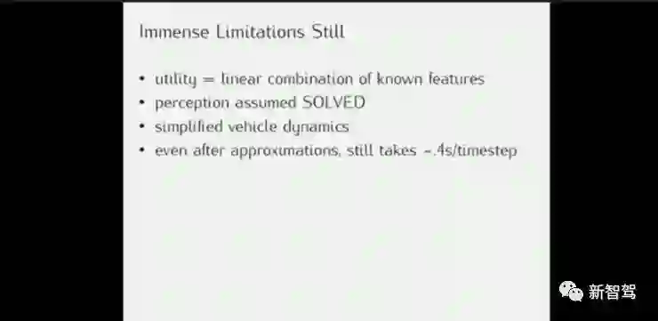 不过这一模型仍然存在某些局限性,如效用局限于已知的Feature的线性组合,假设感知问题已经得到解决,对车辆运行进行了简化,等等。