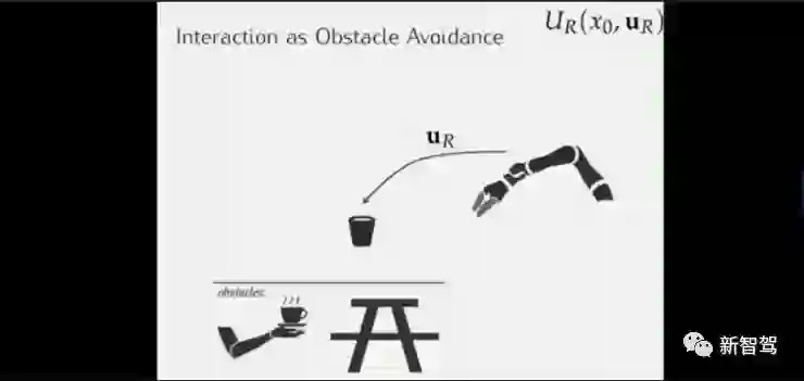 我们现在在做的研究:人并不是障碍,而是将其视为需要通过自己效用函数进行优化的智能体,但我们并不知道其效用函数,参数是隐藏的;机器通过人的动作估计隐藏状态,估计其下一步行为,如果机器人对人的下一步动作有估计,那么机器人会将其加入到自己的效用函数中:如果这件事情发生,我应该怎么做才是最好的选择。