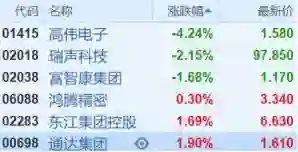 信利国际(00732.HK)收涨17.5%,报1.41港元,为10个月以来最大升幅,最新总市值44亿港元。