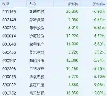 政治局会议开完后 地产股全线下跌