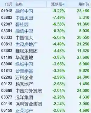今天港A市场地产股全线下跌。