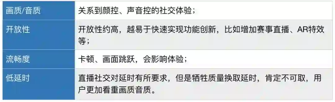 音视频质量:与视频直播类似,画面与音质决定了用户的直观体验