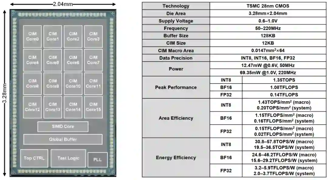 图 5:ReDCIM芯片的显微照片和硬件指标。