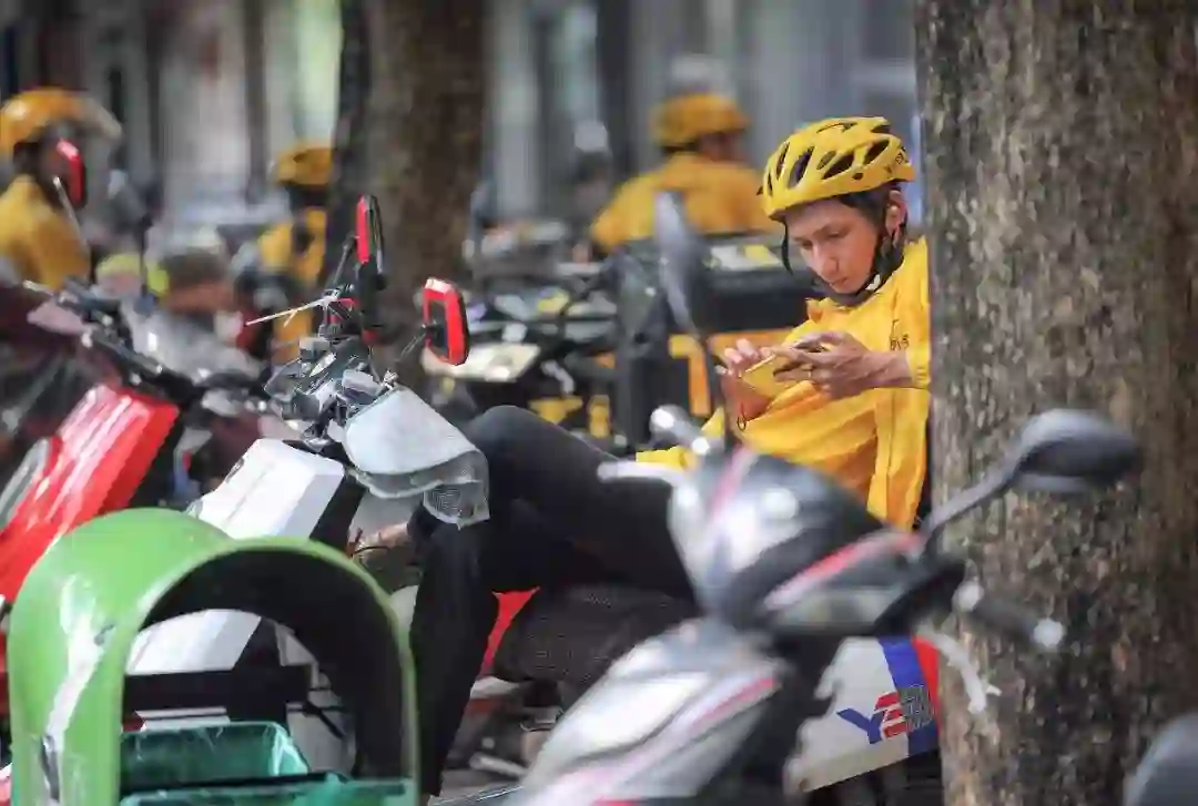 一位外卖小哥,一辆电动车加一部手机,从接单去饭店取餐到送到消费者指定地点,