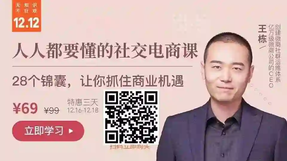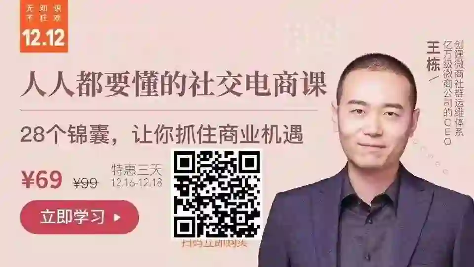 为了帮助每一个人看清时代发展的机遇,社交电商专家王栋将在课程里跟大家谈一谈这背后的商业逻辑。