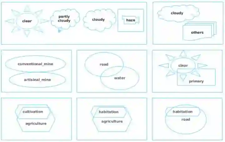我分析了标签之间的相关性,发现某几个标签经常共存,但其他标签没有这种情况。例如,晴朗、局部多云、多云和起雾这几个标签不会共存,但是住所和农业标签经常出现在一起。这意味着使用这种关联结构可能会使模型得到改进。