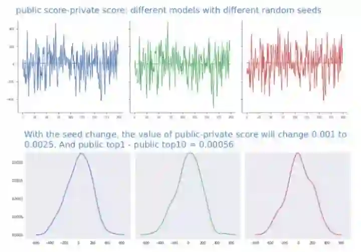 我发现随着种子的改变,我模拟的公共排行榜分数和私人排行榜分数之间的差距可能会扩大到0.0025。但在公共排行榜上,第一名和第十名的差距比这一数值要小。