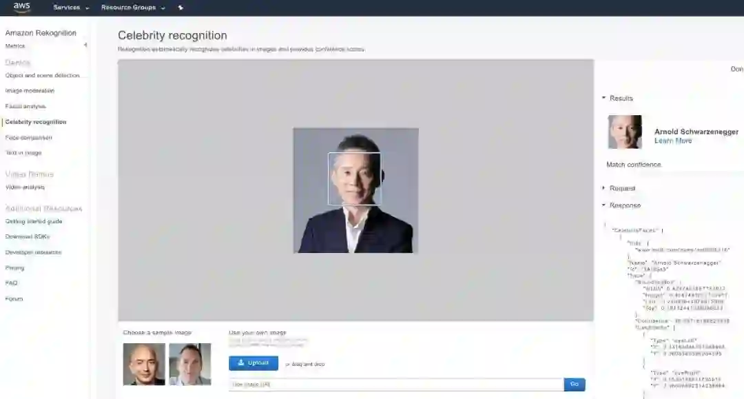 比赛期间,吴育昕团队成功地攻击了 AWS 名人鉴别系统,让它把蒋昌建识别为了施瓦辛格。