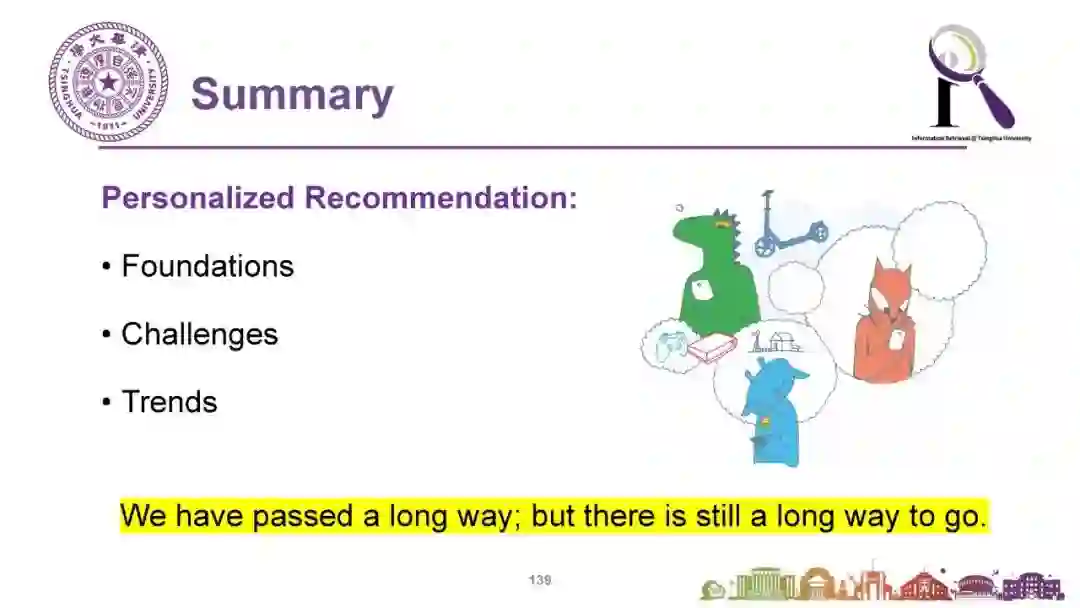 个性化推荐在当前消费场景中起着至关重要的作用。本教程主要包括两个部分:基础和趋势。在第一部分中,我们将介绍个性化推荐系统的基本问题,包括用户意图和需求,挑战性问题和最新技术。在第二部分中,我们将重点关注相关领域中的新趋势主题,包括(但不限于):用户满意度和评估方式,可解释的推荐,基于知识图谱和推论的推荐,跨域异构推荐以及公平性。最后,我们将讨论未来的发展方向。