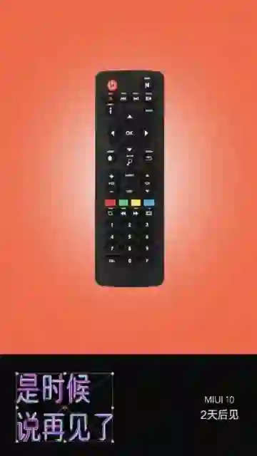 今天,MIUI官方发布消息说,是时候说再见了。配图则是一张电视遥控器的图片。这张海报或许在暗示MIUI 10将具备对电器进行遥控的功能,或许在对智能家居方面会带来全新的功能体验。
