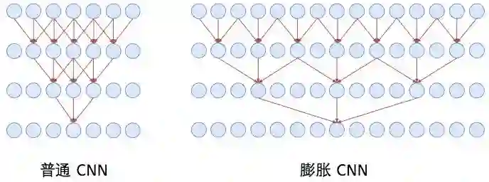 接下来,为了使得 CNN 模型能够捕捉更远的的距离,并且又不至于增加模型参数,我们使用了膨胀卷积。