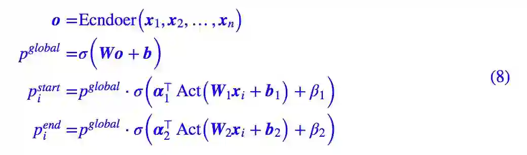 这个全局打分对模型的收敛和效果具有重要的意义,它的作用是更好地判断材料中是否存在答案,一旦材料中没有答案,直接让即可,不用“煞费苦心”让每个词的标注都为 0。