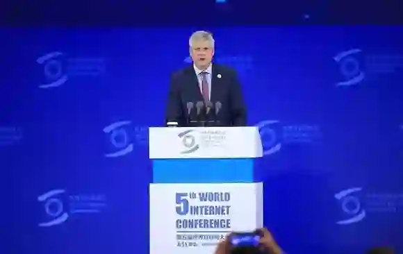 中国电信集团有限公司董事长杨杰作为信息通信行业的嘉宾代表在大会开幕式上致辞。他从三个方面分享了创造和繁荣互信共治数字世界的思考。