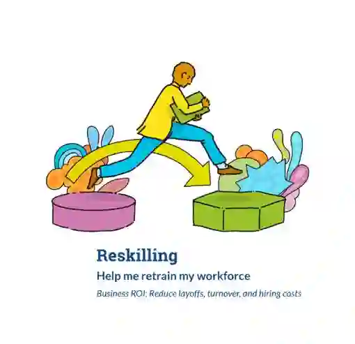 学习新技能培训是为那些需要进入一种全新的工作和职业的工人而设计的。这些工人不仅是需要额外的技能,而是需要全新的技能。这种类型的培训已往通常发生在员工被解雇后,但是,现在越来越多的雇主投资于此,以避免裁员和更加昂贵的招聘新人。例如,美国电话电报公司(AT&T)在分析其员工队伍和根据预期增长领域对员工进行再培训方面投入了大量资金。该公司的研究显示,在25万名员工中,只有约一半具备必要的科学、技术、工程和数学技能,约10万名员工正在从事可能在10年内过时的硬件相关工作。该公司没有雇佣全新的员工,而是投资10亿美元,建立了一个多年计划,包括职业中心、在线课程以及与Coursera、Udacity和领先大学的合作。另一个例子是,沃尔玛为员工提供为期2到6周的高级零售技能培训,旨在帮助他们进入公司的新工作岗位。