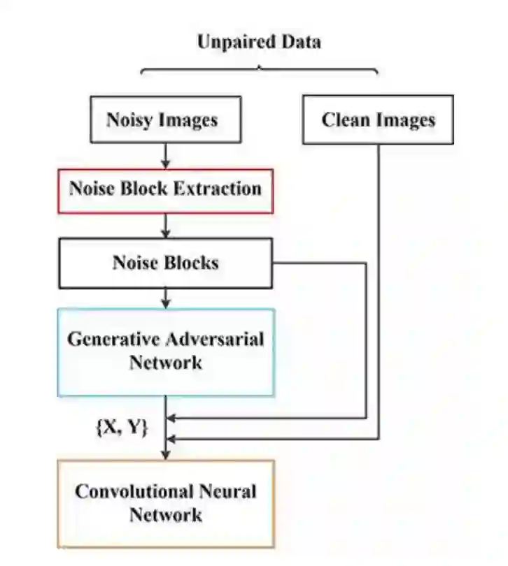 作者在本文中提出了一个新颖的两步框架。首先,训练 GAN 以估计输入噪声图像上的噪声分布并生成噪声样本。其次,利用从第一步采样的噪声块来构建成对的训练数据集,该数据集又用于训练 CNN 以对给定的噪声图像进行去噪。