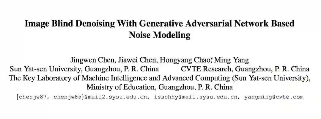 Image Blind Denoising With Generative Adversarial Network Based Noise Modeling 是中山大学和 CVTE 发表于 CVPR 2018 的工作,该文章通过利用 GAN 对噪声分布进行建模,并通过建立的模型生成噪声样本,与干净图像集合构成训练数据集,训练去噪网络来进行盲去噪。