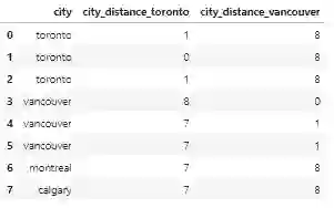 msk = df_city_ex['city_distance_toronto'] <= 2df_city_ex.loc[msk, 'city'] = 'toronto'msk = df_city_ex['city_distance_vancouver'] <= 2df_city_ex.loc[msk, 'city'] = 'vancouver'df_city_ex