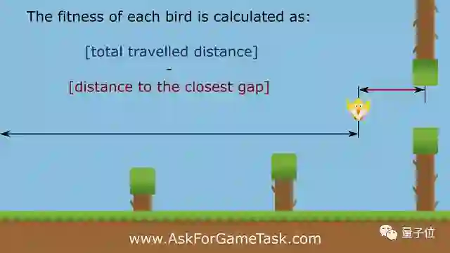 在这个项目中,我们按照小鸟的飞行距离给予奖励。另外,我们会根据小鸟和下一个豁口的距离给予惩罚。按照这种方式,就可以区别哪些飞行了同样距离的小鸟。