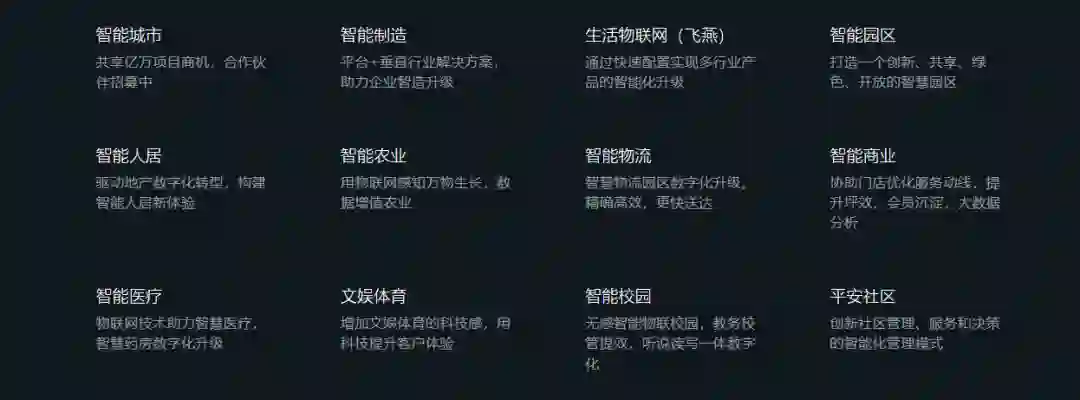 随 IoT 建设的深入,行业内对物联网解决方案的划分也渐进清晰,如生活物联网、智慧农业、智慧制造、智慧城市、智慧园区等。