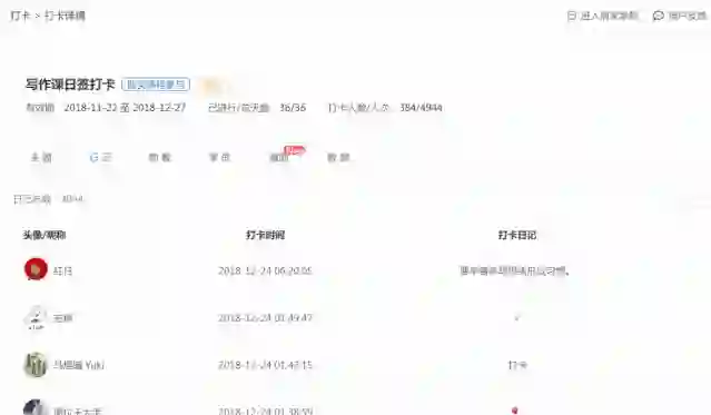 学员打卡记录。
