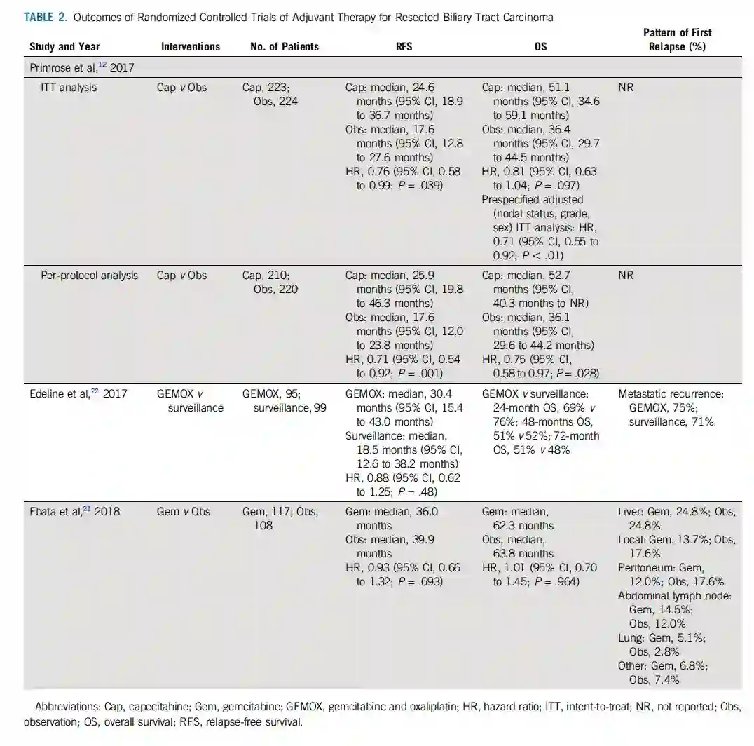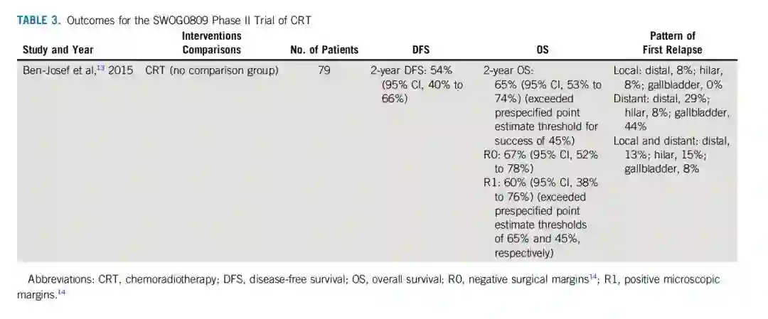 表2. 胆管癌辅助治疗相关研究的结果汇总