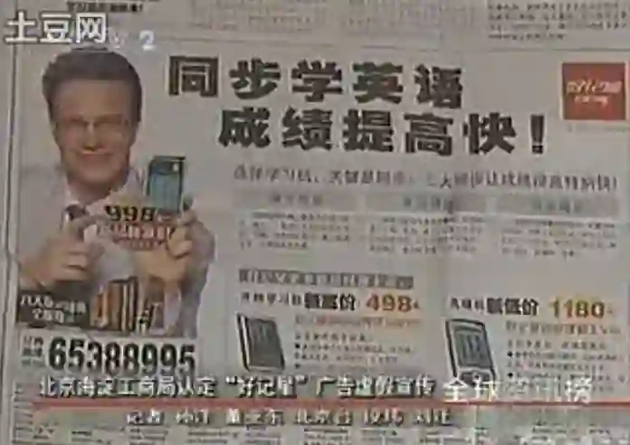 杜国楹瞅准了学英语大潮的红利期,一款英语学习机诞生了。紧接着,迅速聘请中国人的老朋友大山代言,电视广告报刊广告全线铺开轮番轰炸。