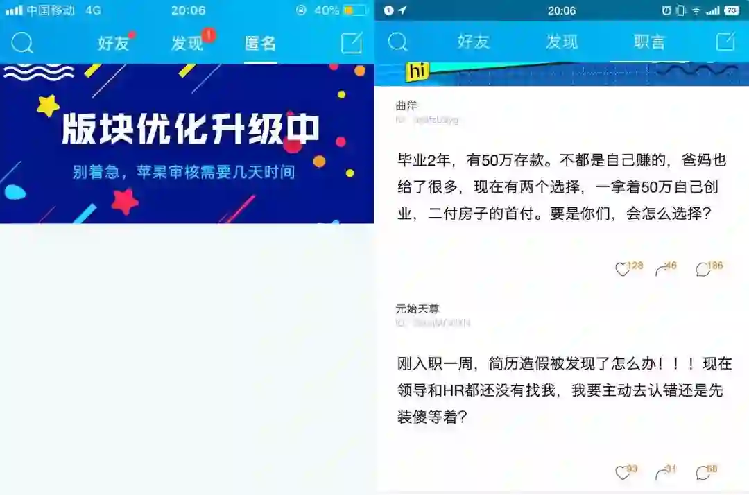 (左为最新的iOS版脉脉app,右为Android版)