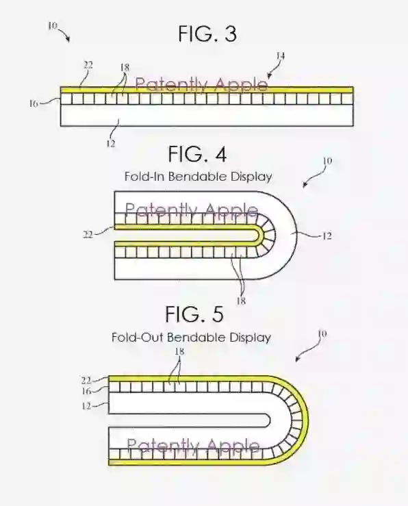 专利文件描述称,苹果正在开发一种新型涂层,能够将聚合物和显示屏结合在一起,可通过喷涂、浸涂或是印刷形式应用在OLED面板上,变成一种保护层,可以有效防止屏幕折叠、弯曲而产生的损耗。