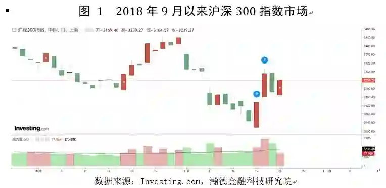 10月19日一行两会发声,国务院副总理刘鹤在接受记者采访时表态,要高度重视股市稳定发展。A股继上一周的暴跌趋势下,周五迎来首次反弹(如图1所示)。10月19日,沪深300指数涨幅2.97%,10月22日涨幅4.32%,收盘3270.27点。然而昨天,沪深300指数下跌2.66%,收盘于3183.43点,今日早盘上涨1.75%,收盘于3239.27点。股市从利好后的短线上涨进入目前的震荡趋势。