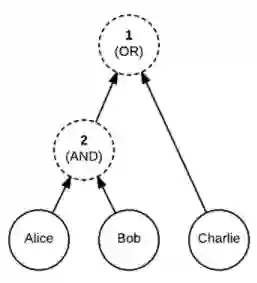 比如下面这个例子中,三人的公钥权重默认都是1,那么整个command有效的条件是:“alice和bob都要签名”或“只要charlie签名”。