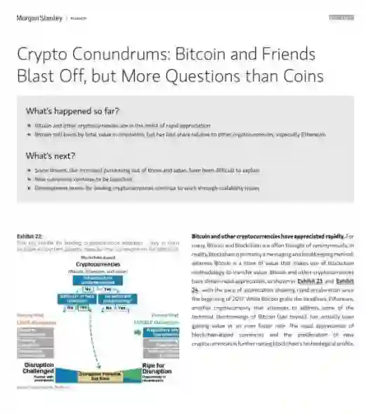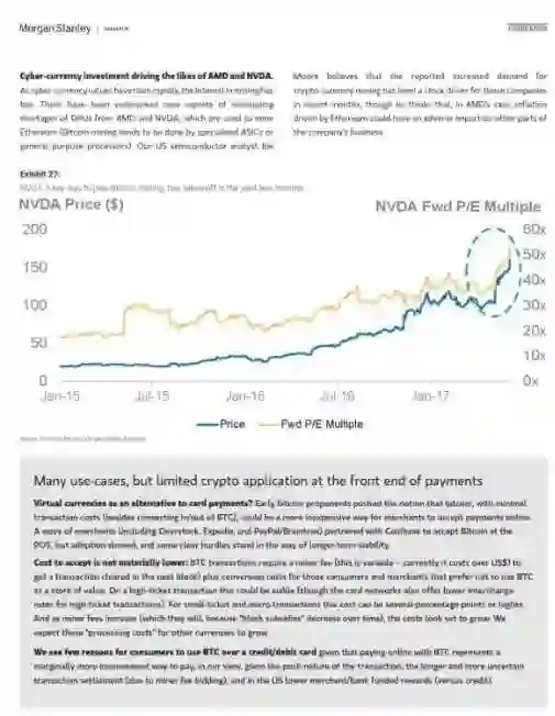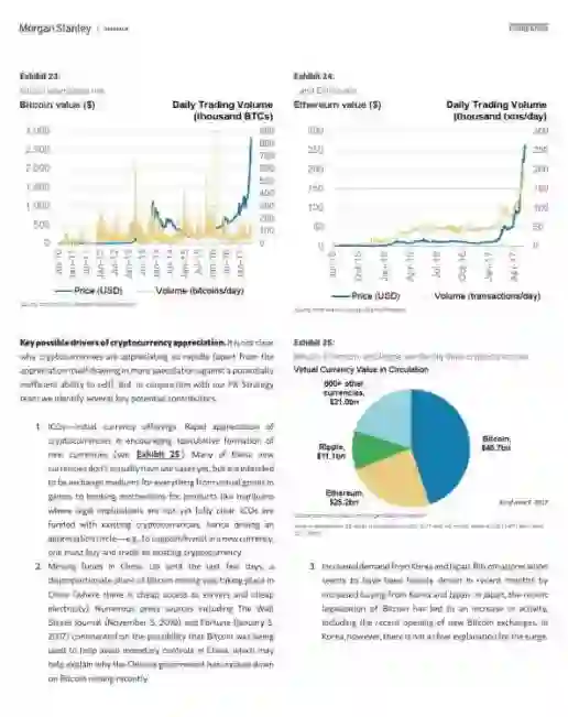 加密货币快速升值,摩根士丹利的金融和技术团队都接到更多咨询。可能的解释是,投资者正在寻找不相关的风险资产,技术人员关注区块链的安全性。但是,政府的接收程度需要加快,尤其是价格监管方面。