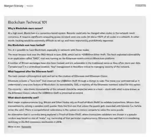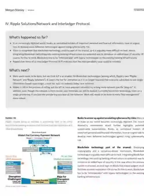 现有公司更可能获胜:由于区块链需要充分利用买入和信托,摩根士丹利预计,现有公司将占据主导地位。
