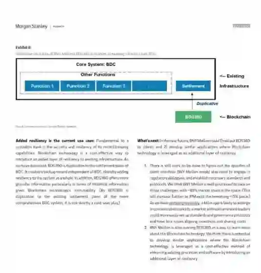 区块链可以嵌入到现有的基础架构中,以增加灵活性和安全性:由于对区块链技术的担忧仍然很强,以及现有金融框架的复杂性,摩根士丹利认为区块链技术的最佳用例是整合到现有基础结构中。
