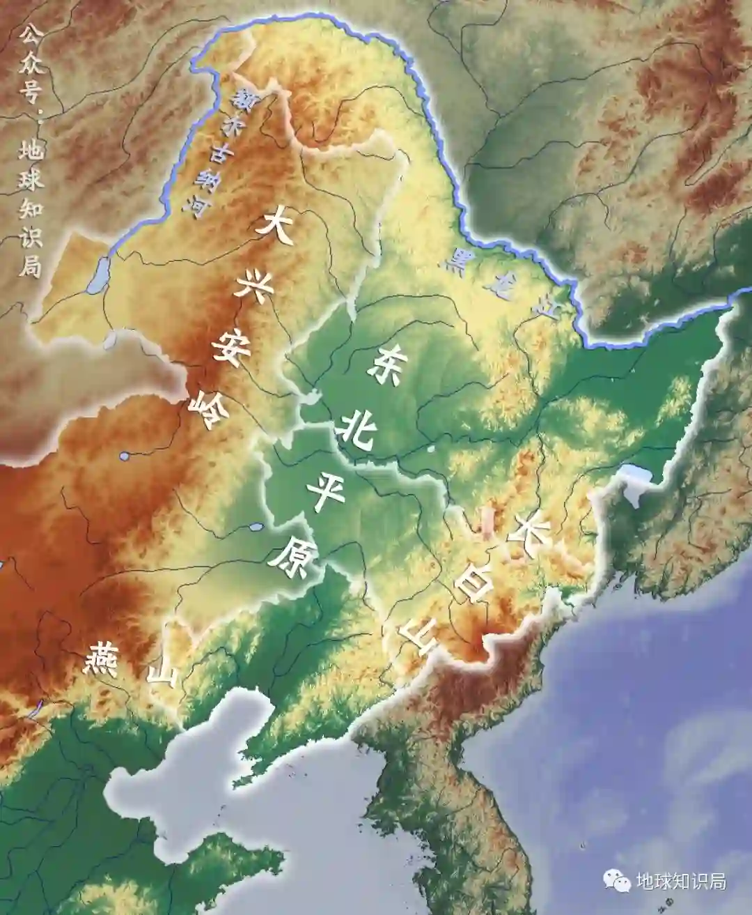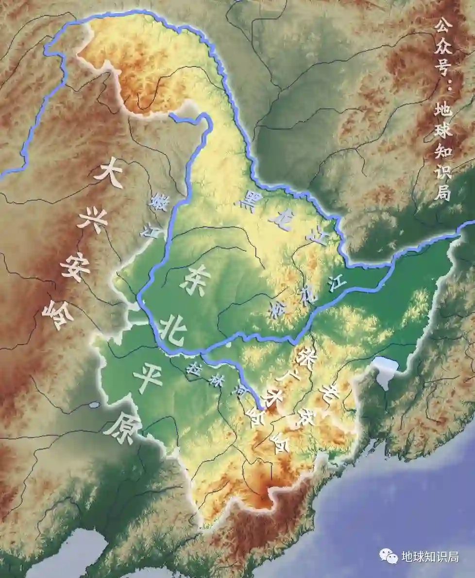 也就是说,东北三省和内蒙古东部之间的分割线没有山地,全部都是水系,甚至是水系之间夹角中人为划分的线。