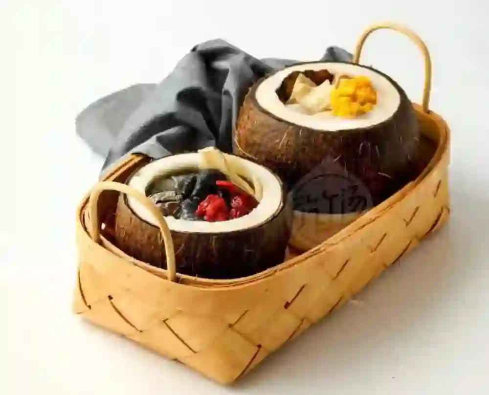 在包装上,“吃个汤”没有延用传统的炖盅,而是创新性地使用椰壳做为容器。通常市面上的椰子直径为36~38公分,而“吃个汤”使用的椰壳全部来自原产地40公分以上的椰子。