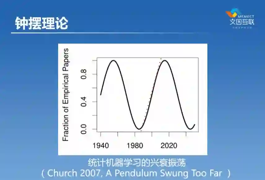 这是我自己的一个看法,刚才我们回顾了人工智能各种各样的起起伏伏,我们也看到了它的鄙视链不停地变化。我自己不停地在想,为什么会有这种变化?到底是什么原因导致了各种不同的算法?有的时候这个算法好一点,有的时候那个算法好一点。我的理解是,我们看人工智能的时候,不能仅仅从数字的角度来看这个问题,因为学者也不是生活在真空当中的,我们都是要钱来养活的。那么钱怎么来的?实际上是个经济学问题。