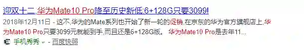 再到第二年12月份,发布14个月后的Mate10 Pro跌至3099元,降价1700元左右,跌幅37%。