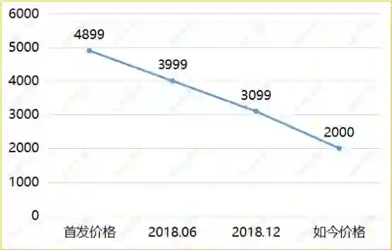 华为Mate10 Pro从上市到第二年的6月份,经历8个月的时间,价格从4899元跌至3999元,降价900元,跌幅19%。
