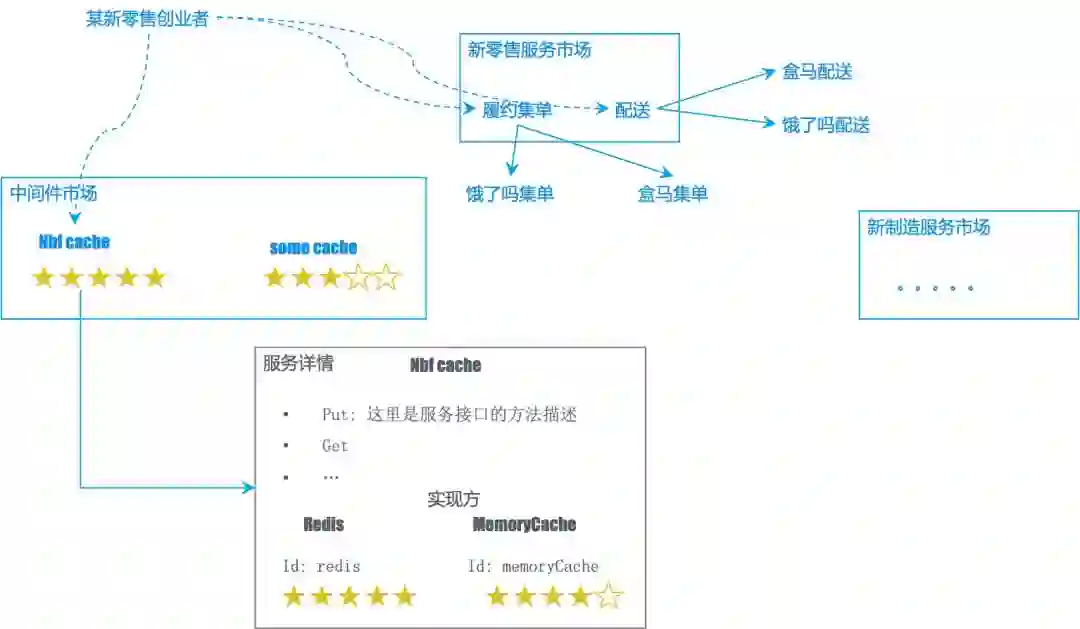 服务发现主要职责怎么找到需要调用的服务,怎么生成调用服务的URI,拿HSF的服务寻址策略来对比,整个机制就简单了 HSF的寻址URI: Proxy://IP:port/service/version/method 对于Broker服务发现 IP和port对应的容器本身的网络信息,这些可以通过APPName或者Armory分组以及未来serverless后的GroupId来获取 serviceName,version这些数据就是第三层Broker数据层提供的spi和bundle元数据信息 有了这些基本信息以后,我们就可以生成NBF服务发现的URI了。