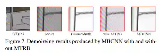 Image demoireing是涉及纹理和颜色恢复的多方面图像恢复任务。在本文中,提出了一种新颖的多尺度bandpass 卷积神经网络(MBCNN)来解决这个问题。作为端到端解决方案,MBCNN分别解决了两个子问题。对于纹理恢复子问题,提出了一个可学习的带通滤波器(LBF),以了解去除摩尔纹之前的频率。对于颜色恢复子问题,提出了两步色调映射策略,该策略首先应用全局色调映射来校正全局色彩shift,然后对每个像素执行颜色的局部微调。通过消融研究,我们证明了MBCNN不同组件的有效性。在两个公共数据集上的实验结果表明,本文的方法大大优于最新方法(在PSNR方面超过2dB)。