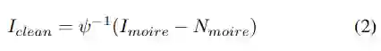 其中ψ-1是ψ的反函数,在图像处理领域被称为色调映射函数。以此模型建模,图像去摩尔纹任务可以分为两步,即摩尔条纹去除和色调映射。