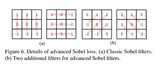 在本文中,将L1损失用作基本损失函数,因为已经证明 L1损失比L2损失对图像恢复任务更有效。但是,L1损失本身是不够的,因为它是无法提供结构信息的逐点损失,而摩尔纹是 structural artifact。本文提出了Advanced Sobel Loss(ASL)来解决此问题。