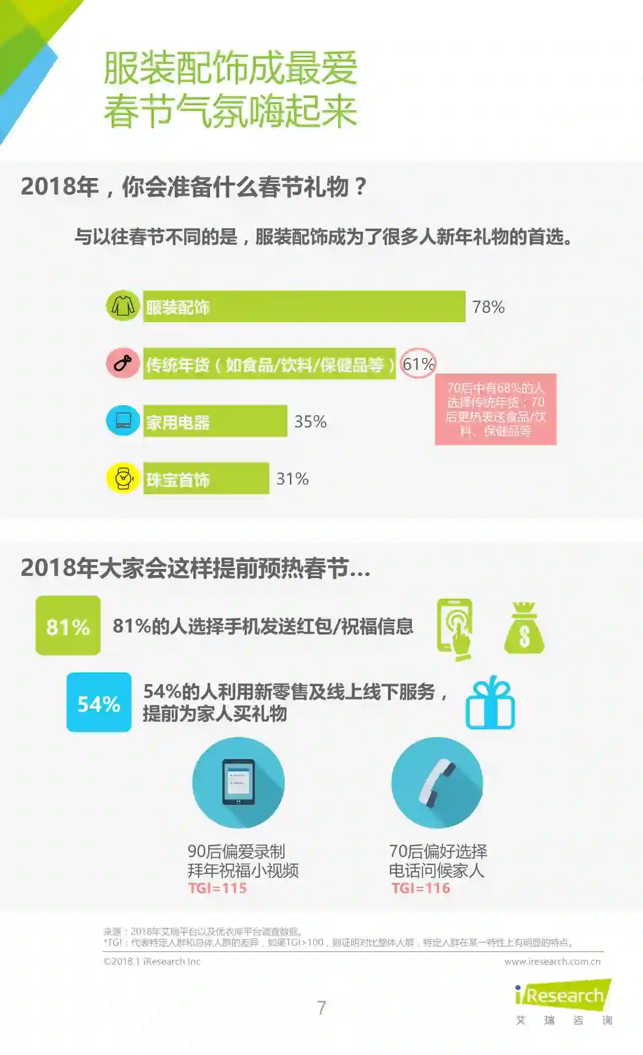 本报告是由艾瑞咨询、优衣库联合发布,针对整体人群在2018年春节期间行为上的改变以及新零售如何影响人们春节期间的消费购买行为做出研究。