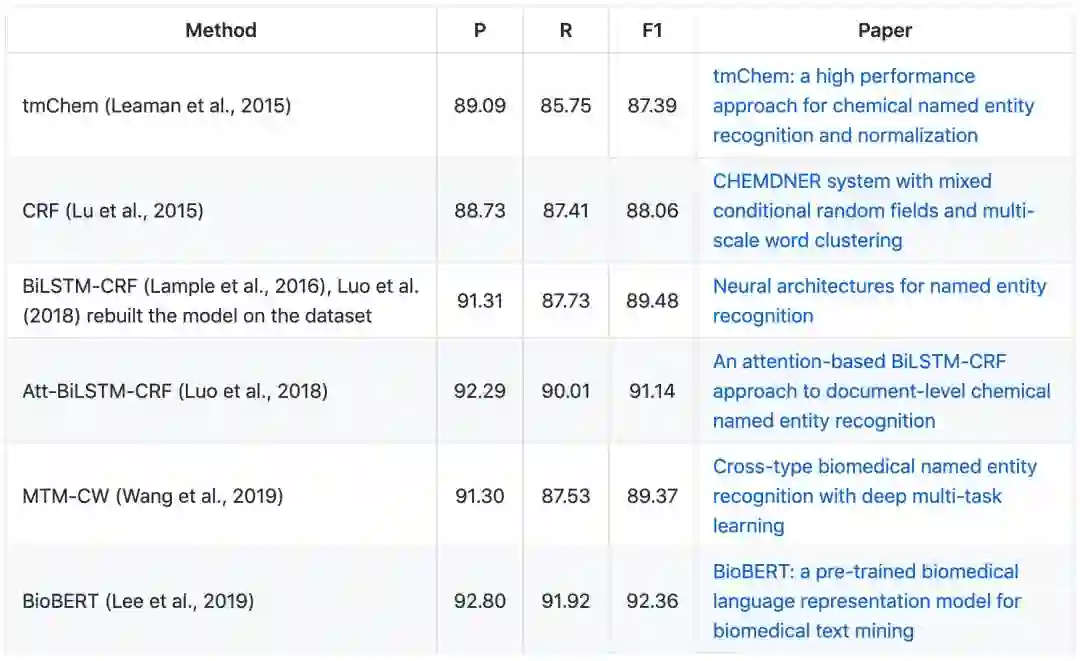 Mining chemical patents with an ensemble of open systems[J]. Leaman R, Wei C H, Zou C, et al. Database, 2016, 2016.