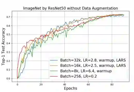 图 4:通过使用 LARS,我们能把 ResNet-50 的批量大小扩展到 32K
