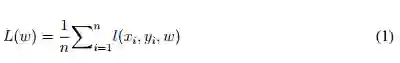 现在令 w 代表 DNN 的权重、X 代表训练数据、n 为 X 中的样本数,而 Y 代表训练数据 X 的标注。我们令 x_i 为 X 的样本,(x_i,w)为 x_i 和其标注 y_i(i ∈ {1, 2, ..., n))所计算出的损失。一般来说,我们使用如交叉熵函数那样的损失函数。DNN 训练的目标是最小化方程(1)中的损失函数。